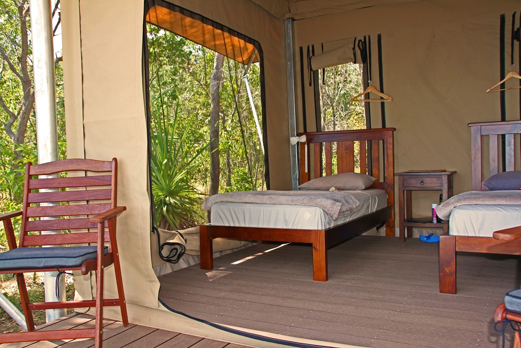 Canvas safari-tents provide a comfortable nights’ accommodation. The tents are strategically arranged along the cliff top overlooking the water. Each tent is twin-share and contains 2 single beds (all linen is included), a bedside table and light.
