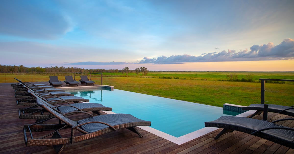 The lodge is located just south of Darwin on Finniss River Station, a working cattle property and features 6 luxury suites, pool and high-end restaurant, all overlooking the nearby wetlands. Enjoy morning and afternoon guided activities with time to simply relax at the lodge during the heat of the day.
